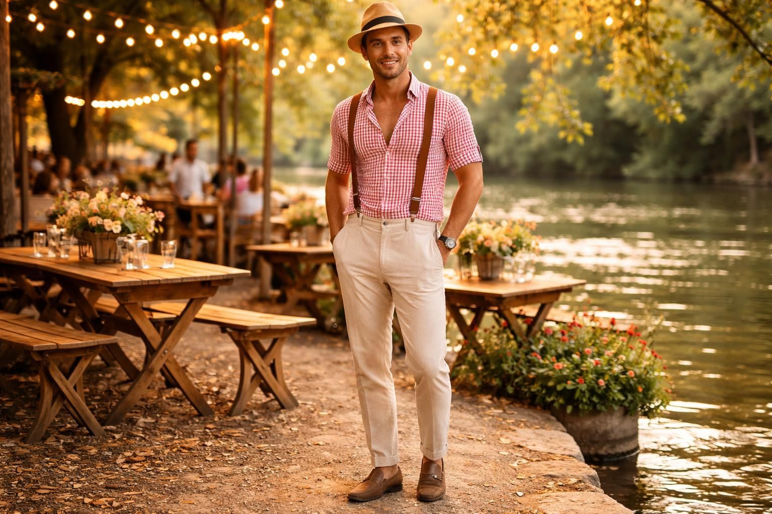Pour composer une tenue guinguette homme réussie, certaines pièces emblématiques doivent figurer dans votre garde-robe estivale. Voici les éléments indispensables à considérer :