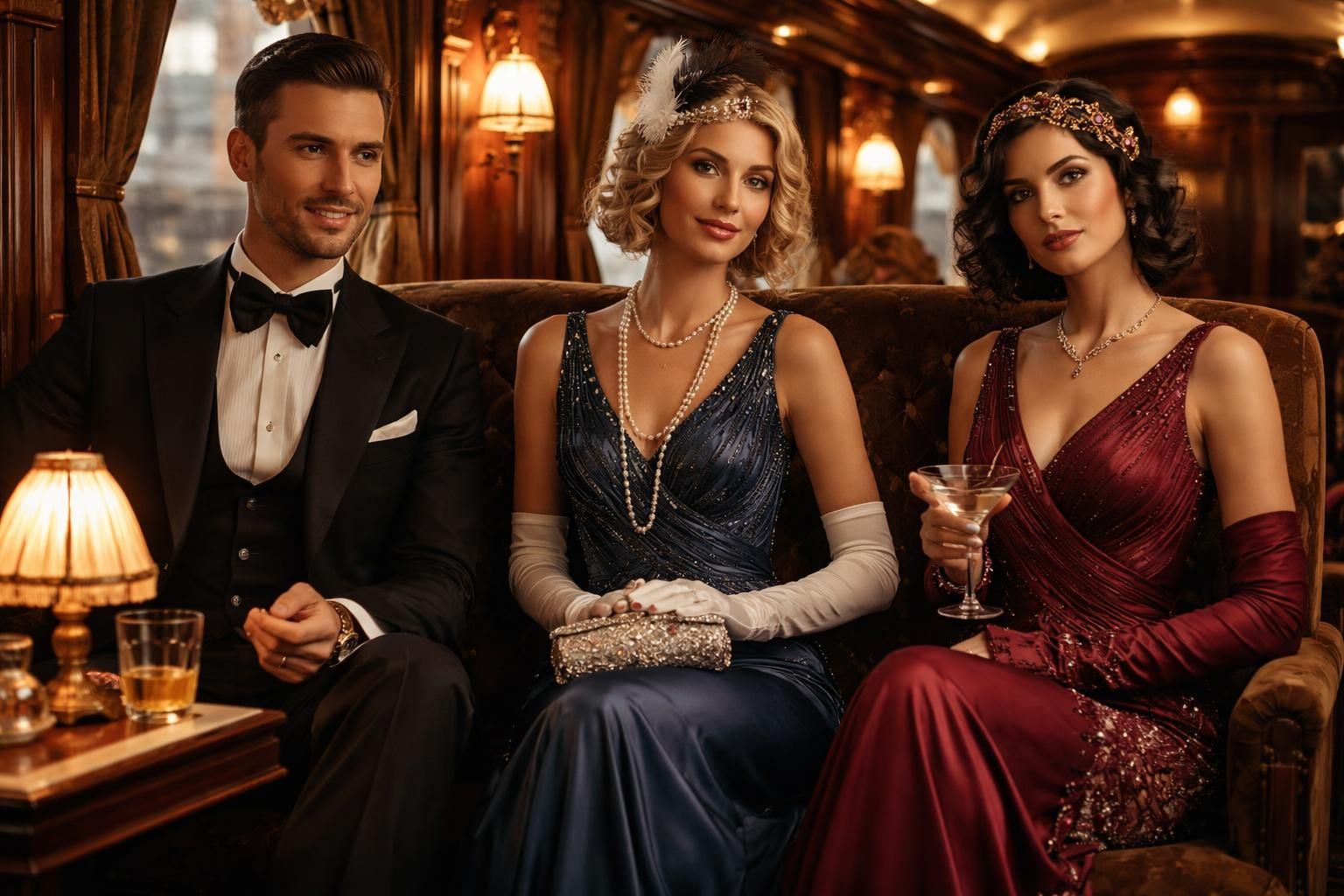 | Élégance nocturne | Tenue de nuit respectant l’ambiance du train. |