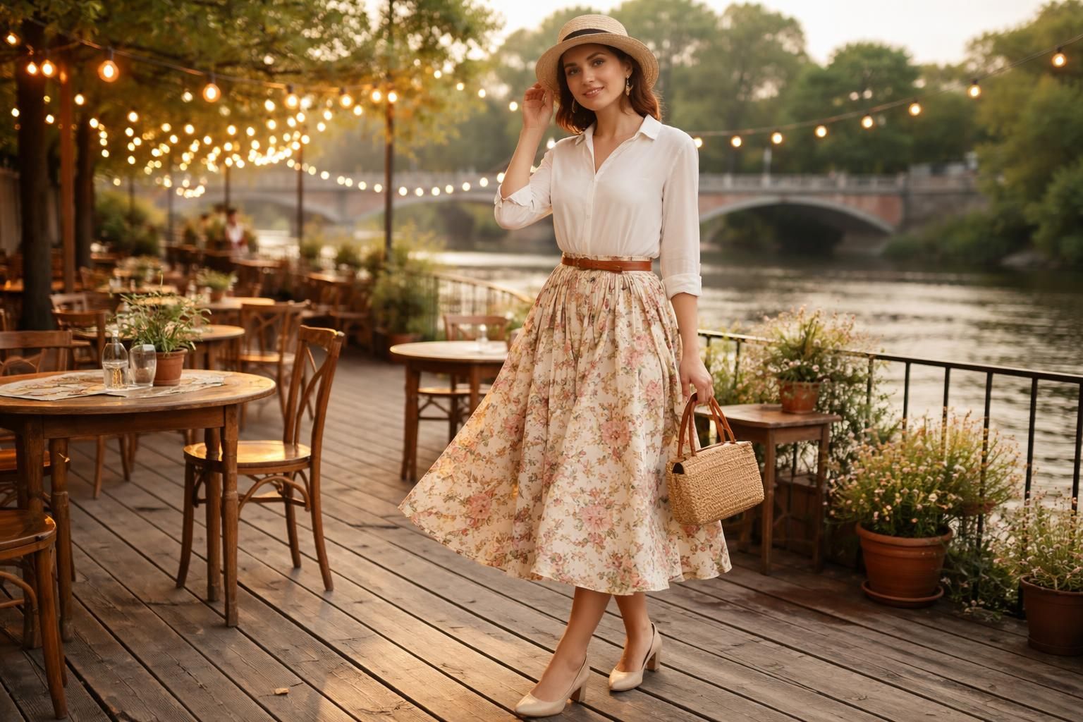 Pour composer une tenue réussie, certaines pièces sont incontournables. Le vestiaire guinguette privilégie des coupes flatteuses et confortables, permettant une liberté de mouvement pour la danse tout en restant stylée. La robe se distingue comme la pièce maîtresse du look guinguette. On privilégie la coupe « patineuse » ou « corolle », avec un haut ajusté qui marque la taille et une jupe évasée, idéale pour virevolter.